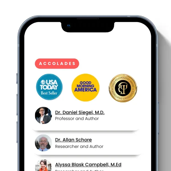 — Community of 1.2M+ caregivers worldwide — Endorsed by experts like Dr. Daniel Siegel, M.D., Dr. Shefali Tsabury, and Dr. Allan N. Schore